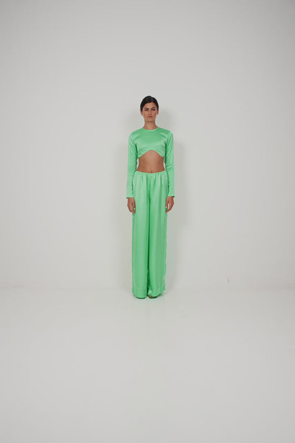 A satin pant designed to sit with ease on the waist and fall with graceful movement. Cut with a streamlined leg, its clean shape makes it a timeless wardrobe staple from day to night.